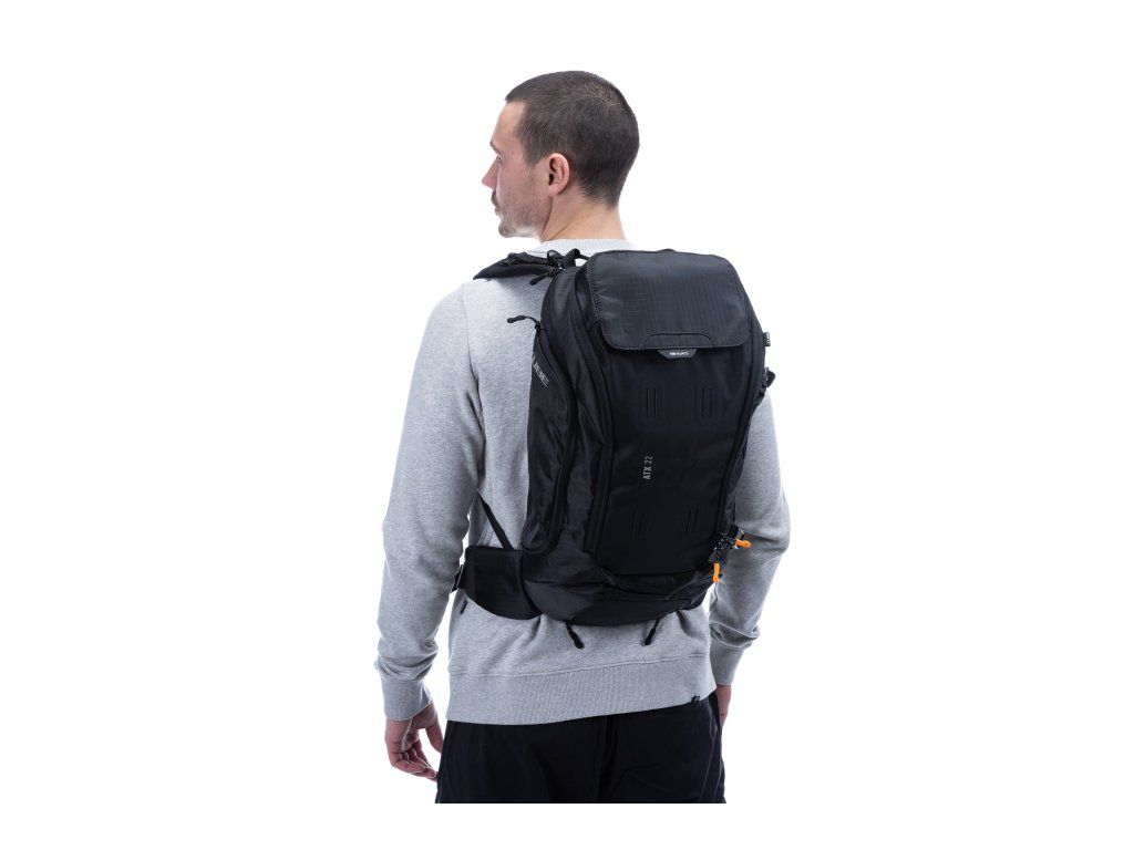 Batoh CUBE ATX 22 vyniká především svou konstrukcí zaměřenou na ergonomii. Klíčovým prvkem je NF Ergonomics back system doplněný polstrovanými bederními popruhy, které efektivně přenášejí váhu z ramen do oblasti pánve, čímž snižují únavu při dlouhých jezdcích.