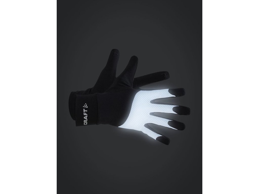 Hřbet rukavic je opatřen výraznými reflexními prvky, které zvyšují bezpečnost při běhu v horších světelných podmínkách. Ergonomický střih a elastický materiál zajišťují přirozené usazení na ruce bez omezení pohybu.