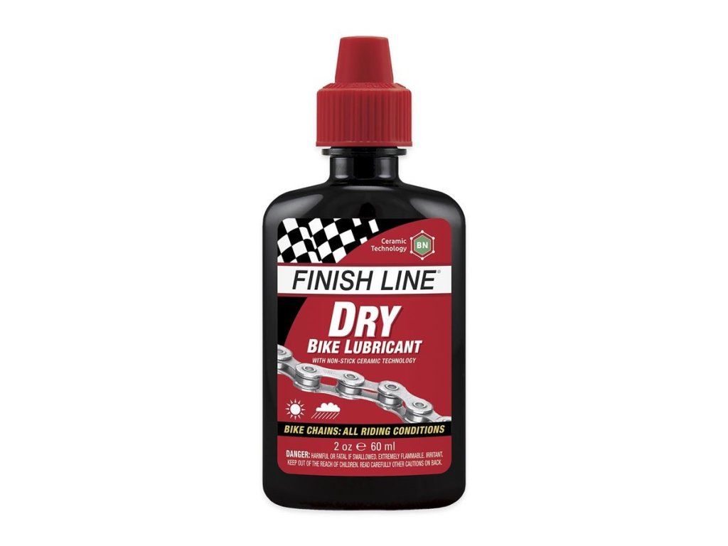 Vylepčený Finish Line Dry Lube CT (Ceramic Technology) je suché mazivo s příměsí keramických nanočástic nitridu boritého, které poskytují nižší tření, vyšší ochranu a čistější provoz. Vhodné je zejména pro suché a prašné podmínky, ale zvládne i mírně vlhké prostředí. Vytváří suchý voskový film, který nelepí prach ani nečistoty a zajišťuje optimální chod pohonu.