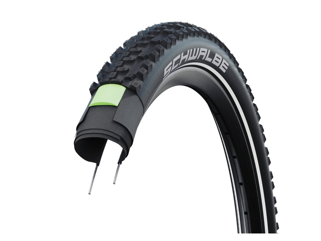 Schwalbe Smart Sam Plus kombinuje nízký valivý odpor se spolehlivou trakcí v terénu. Ochranu proti defektům zajišťuje 3mm vrstva GreenGuard a odolná bočnice SnakeSkin. Homologace ECE-R75 umožňuje použití na e-bicích s podporou až 50 km/h. Reflexní pruhy zajišťují lepší viditelnost v silničním provozu.