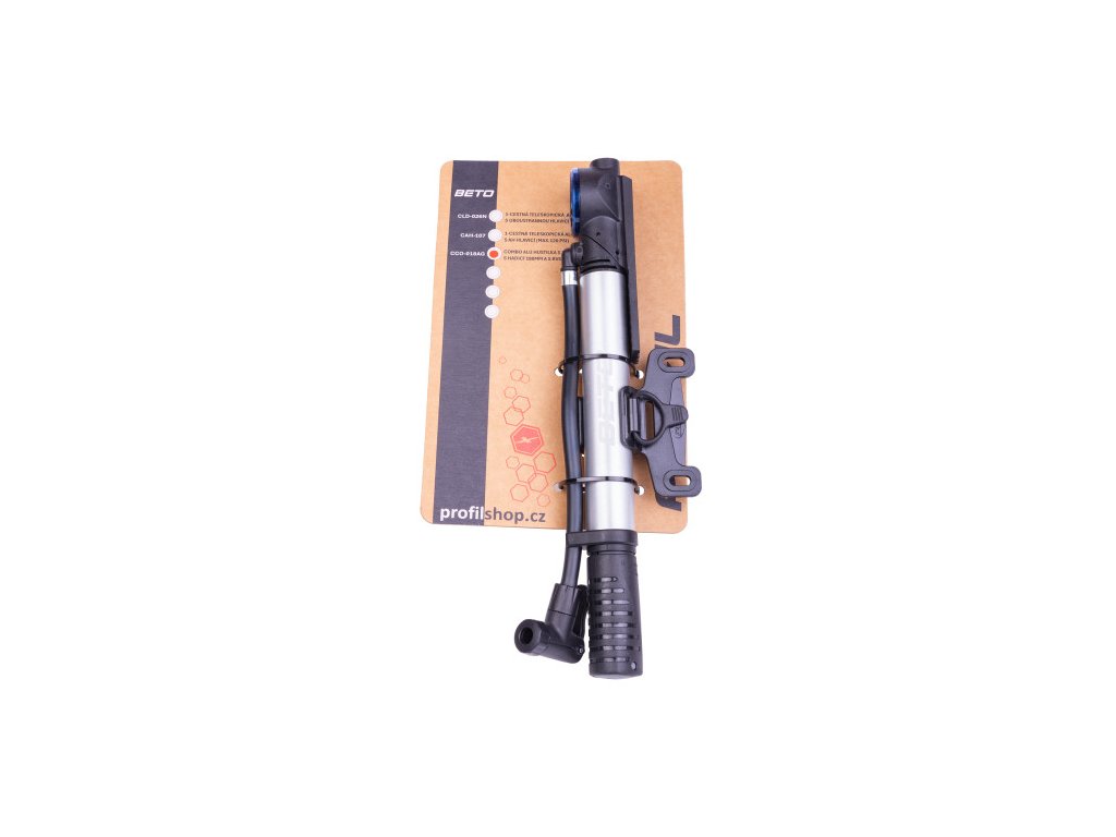 PROFIL CCO-018AG je hliníková hustilka typu „combo“, která umožňuje huštění dvěma způsoby – klasicky ručně, nebo jako nožní pumpa po otočení spodní části. Je vybavena integrovaným manometrem pro kontrolu tlaku a flexibilní hadičkou skrytou uvnitř tubusu, která zajišťuje pohodlné připojení k ventilu bez rizika jeho poškození.